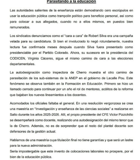 InicioInformación nacionalSindicato de Formación criticó accionar de ex jerarcas de la educación