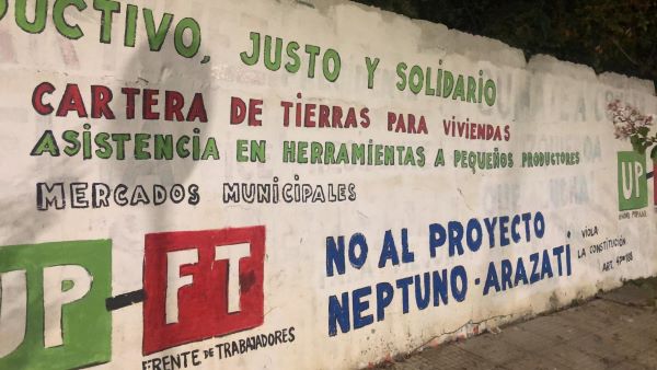 Los muros de ciudades y pueblos muestran las propuestas de la izquierda. Las fotografías muestran la propaganda mural en San José de Mayo.