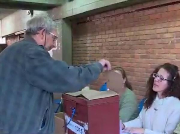 Foto: Eduardo Rubio emitiendo su voto. Captura pantalla Canal 12.