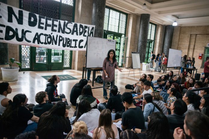 “Estamos con una pérdida salarial record, que se profundiza mes a mes con aumentos dictados unilateralmente por el gobierno que desconoce la negociación paritaria y siempre por debajo de la inflación”, declaró Laura Carboni, secretaria general de la Asociación Gremial Docente de la UBA (AGD UBA). Ileana Celotto, secretaria adjunta de AGD UBA afirmó que la medida «no sólo es en defensa de los salarios sino también de la universidad pública, que sin docentes y no docentes no puede funcionar”.