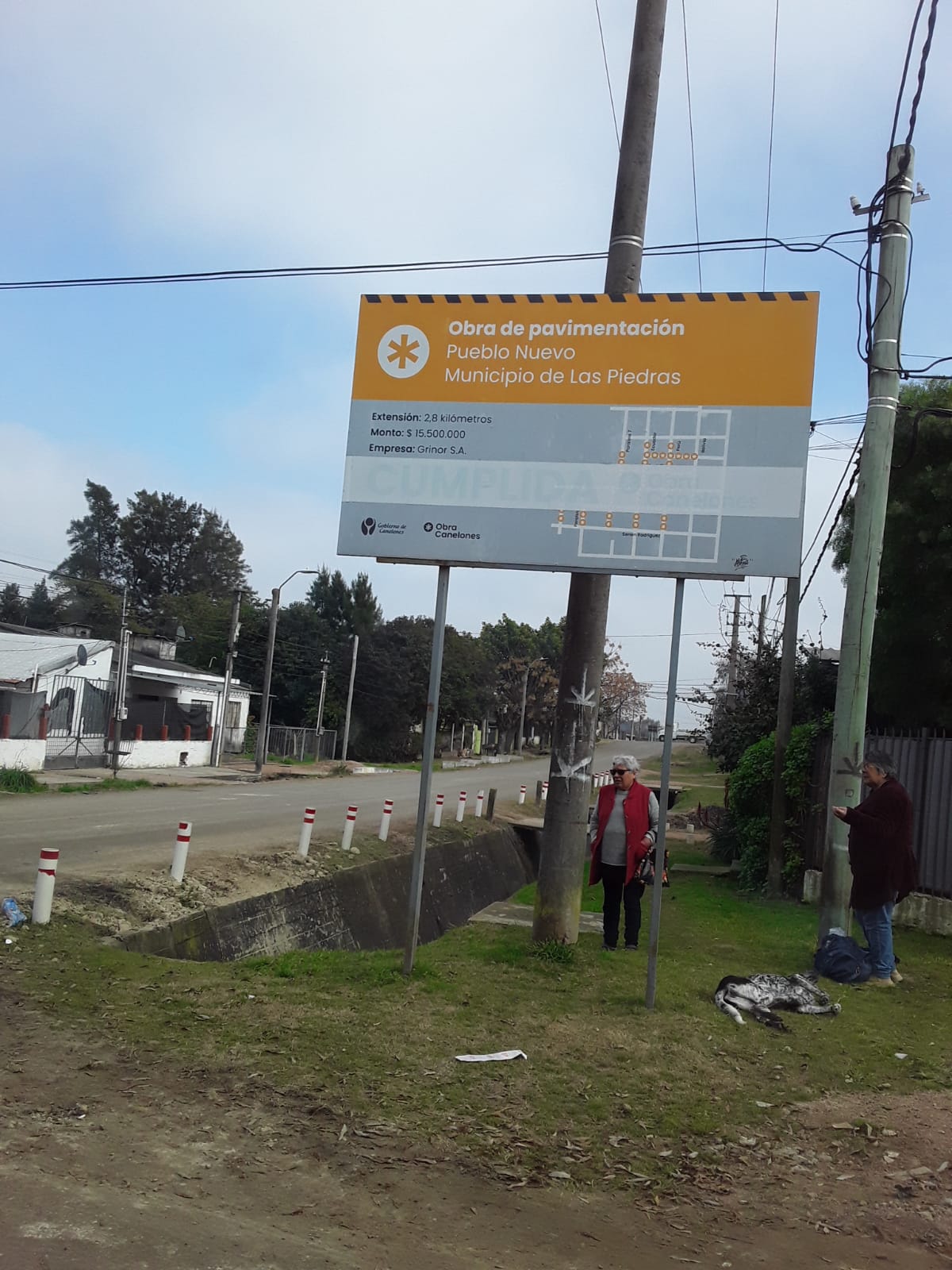 En la Ciudad de Las Piedras, el estado de las calles es preocupación de los vecinos . En el barrio Pueblo Nuevo hace un par de años la Intendencia Municipal de Canelones había realizado la pavimentación de las calles de la mitad del barrio. Fueron empresas privadas las que hicieron el trabajo. En la actualidad también se realizan obras de pavimentación, habiendo contratado nuevamente una empresa privada. Otras empresas privadas trabajan para OSE realizando el saneamiento, por ejemplo desde hace una semana en la calle Bolivia y Senén Rodríguez. Las calles que se pavimentaron hace dos años están rotas, señaló Inés, residente con su familia en la zona. Lo tendremos que pagar de nuevo, agregó.