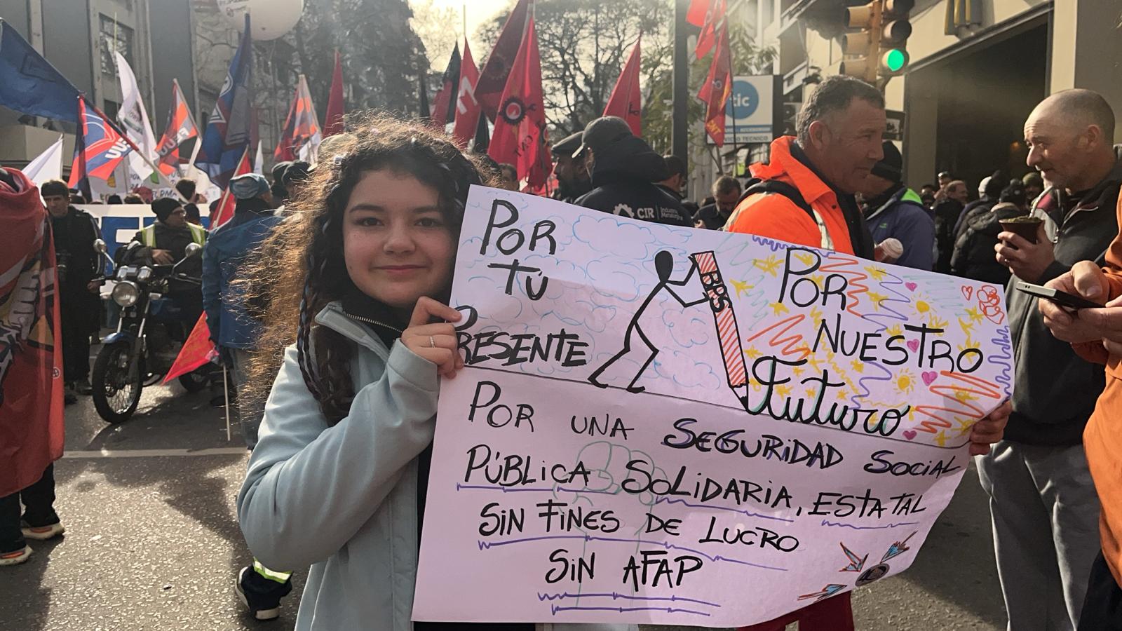 CX36 dialogó con dirigentes gremiales que este martes se concentraron en Plaza Cagancha, luego de marchar desde la explanada de la Universidad.
