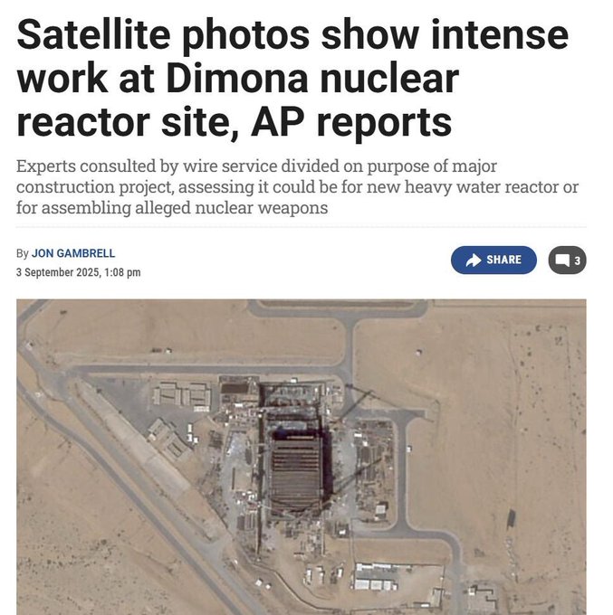 Imágenes satelitales analizadas por expertos y publicadas por Associated Press revelaron obras de construcción aceleradas en el Centro de Investigación Nuclear Shimon Peres, en el desierto del Néguev, donde opera el reactor de Dimona, en medio de un intenso secretismo en torno a la naturaleza del proyecto.
