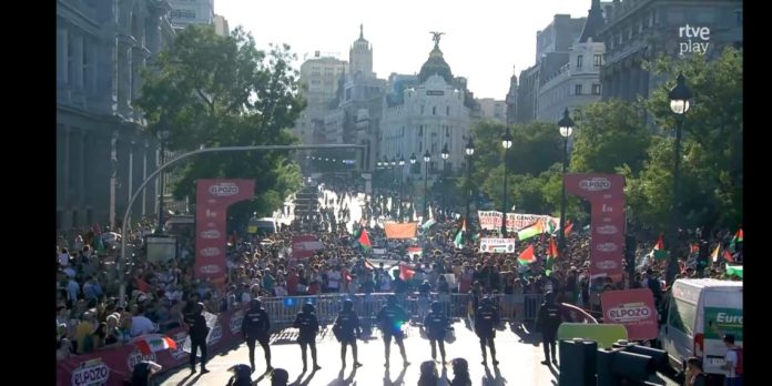 Cabe subrayar que tanto la presidenta de la Comunidad de Madrid, Isabel Díaz Ayuso, como el alcalde de la ciudad, José Luis Martínez-Almeida, habían pedido a las fuerzas represivas que reprimieran con dureza cualquier intento de parar la etapa de La Vuelta. Deben de estar frustrados los fascistas del PP.