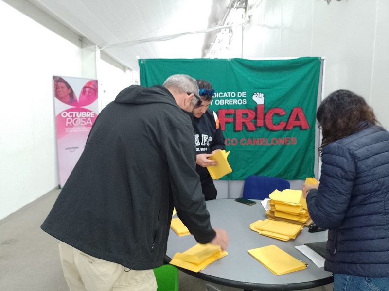 En el día de hoy los trabajadores agremiados el Soofrica, obreros y obreras del firgorífico Canelones realizarón la elección de autoridades. Los trabajadores informan que terminando el escrutinio se constató que de 480 habilitados,  votaron 424, hubieron 4 votos anulados y 5 en blanco. La lista 17 obtuvo  333 votos .