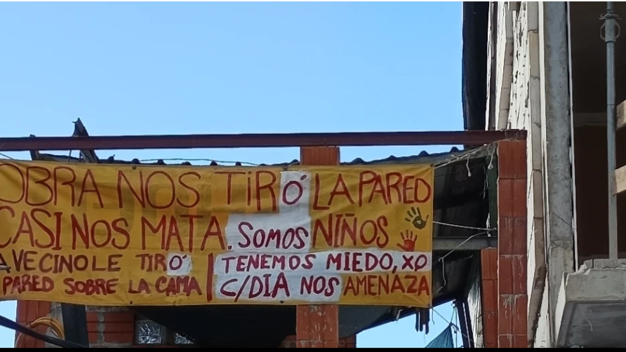 Además de las roturas y daños materiales provocados durante la construcción, como la caída de paredes, escombros y vigas sobre la casa, Esteban denuncia el peligro que corrieron sus hijos por la caída de escombro muy cerca de donde estaban jugando.