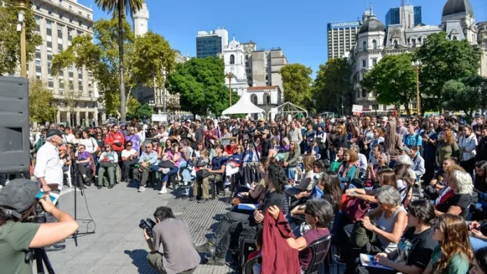 “Acá hay un desprecio ideológico por el conocimiento y la generación de conocimiento. Y eso es triste en un país que tiene una tradición científica y tecnológica de tan alto nivel”. Ataviado con una gorrita para protegerse del fuerte sol de otoño, Alberto Kornblihtt comenzaba así una clase magistral que luego llegaría hasta Darwin y Sarmiento, con críticas pero “sin cancelaciones”, en un fascinante recorrido histórico que iluminó el presente. Todo ocurría en la Plaza de Mayo, y cuando decía “acá”, el premiado biólogo molecular señalaba a la Casa Rosada. Fue una de las potentes postales que dejó el viernes la jornada de clases públicas que docentes y científicos organizaron para visibilizar su reclamo por el ahogo presupuestario que les impuso el gobierno nacional.