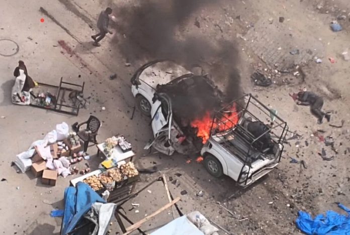 Imágenes tras el atentado con bomba contra un vehículo en la calle Túnel, al este de la ciudad de Gaza /Redes Sociales.