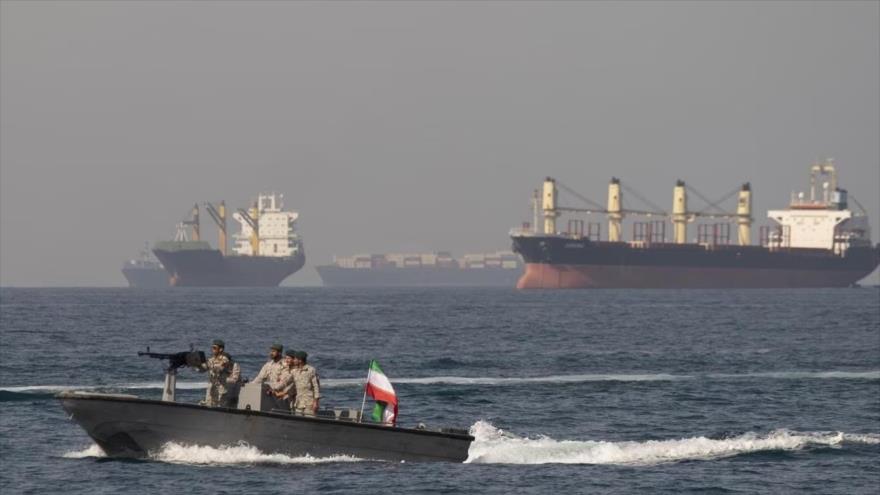 Fuerzas navales de Irán patrullan las aguas territoriales cerca del estrecho de Ormuz/HispanTV.