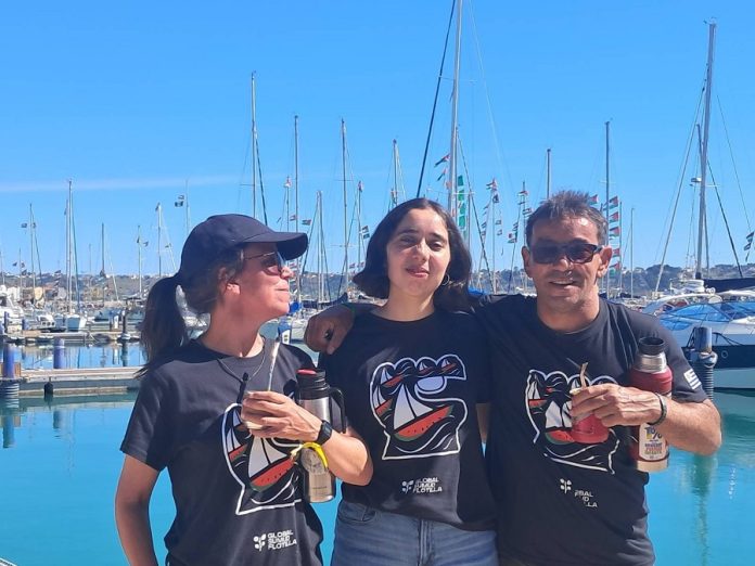 Ana Zugarramurdi, Daniela Lopes y Jorge Vignolo en Sicilia previo a la partida de la flotilla hacia Gaza.