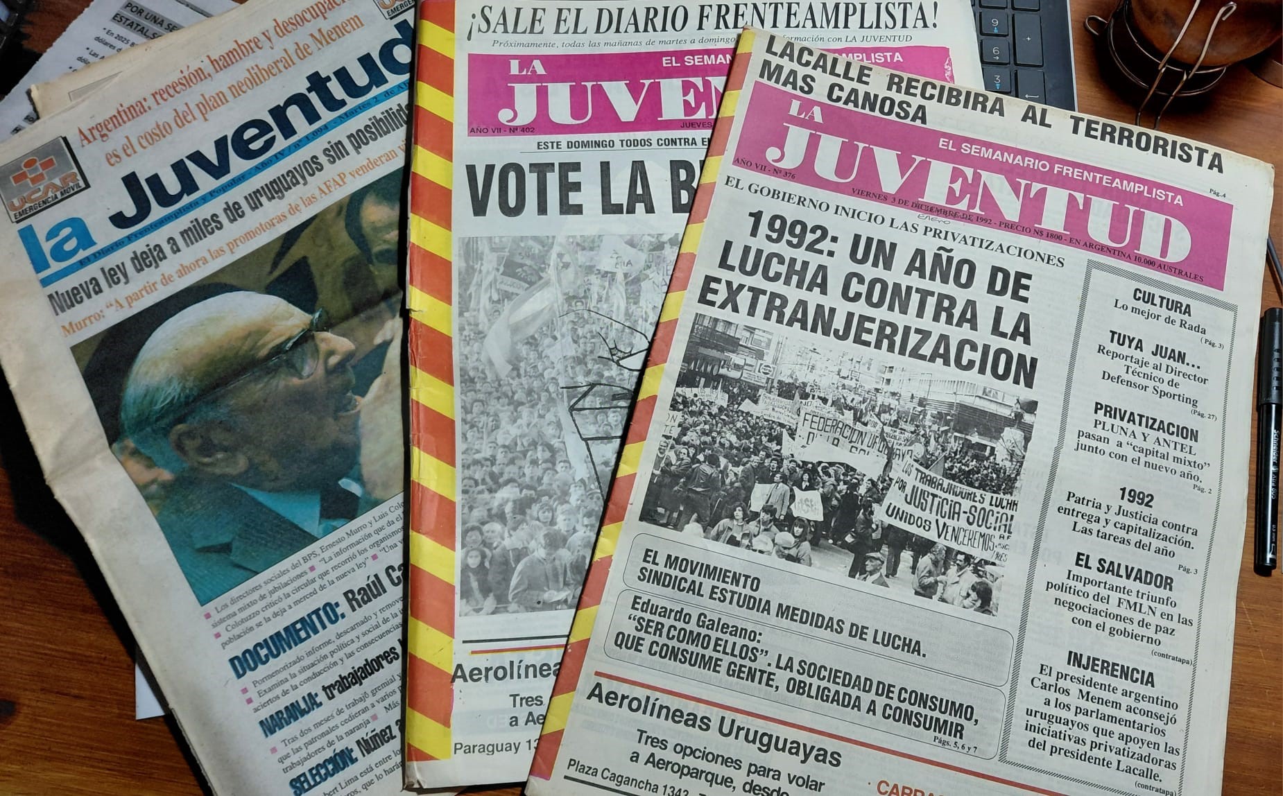 Este jueves en el espacio «Desde el archivo de La Juventud» Héctor Vicente compartió con la audiencia de la 36, ejemplares del diario de los años 1992, 1995 y 1996, donde se destacaron temas nacionales referidos a la privatización de la empresas públicas y de la seguridad social con la introducción de las AFAP.