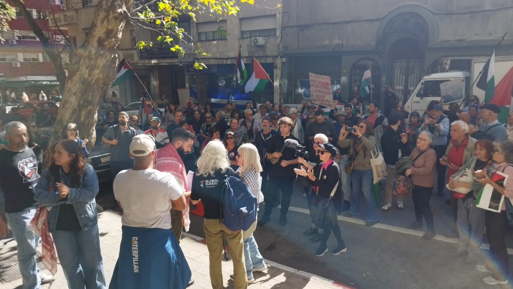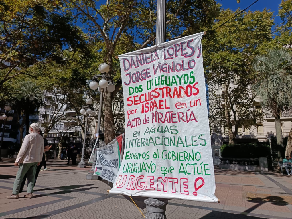 La Coordinación por Palestina y la Flotilla Sumud de Uruguay convocaron en el mediodía de este jueves a una importante concentración en Plaza Libertad para manifestar solidaridad con los detenidos y exigir al gobierno uruguayo que tome acciones que garanticen el regreso a casa de Daniela y Jorge, así como insistir en la necesidad de que nuestro país condene el genocidio contra el pueblo palestino y rompa vínculos con Israel.